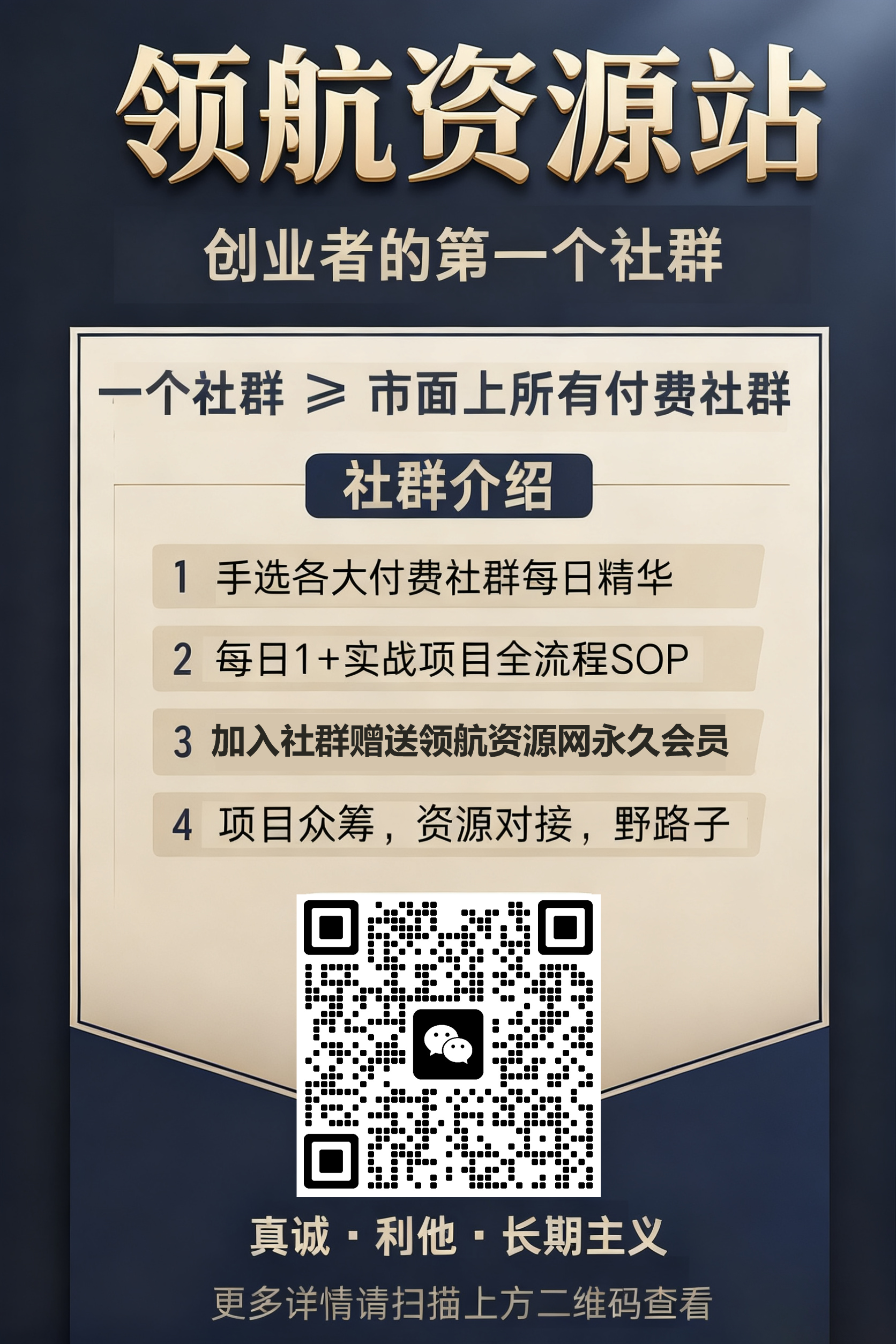 白菜价解锁20000+N个赚钱机会,加入领航资源站会员,全站资源免费学习。